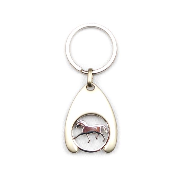 3D prívesok na kľúče s koníkom má dekoračný aj úžitkový charakter. Môže sa použiť ako žetón do nákupného košíka.