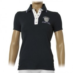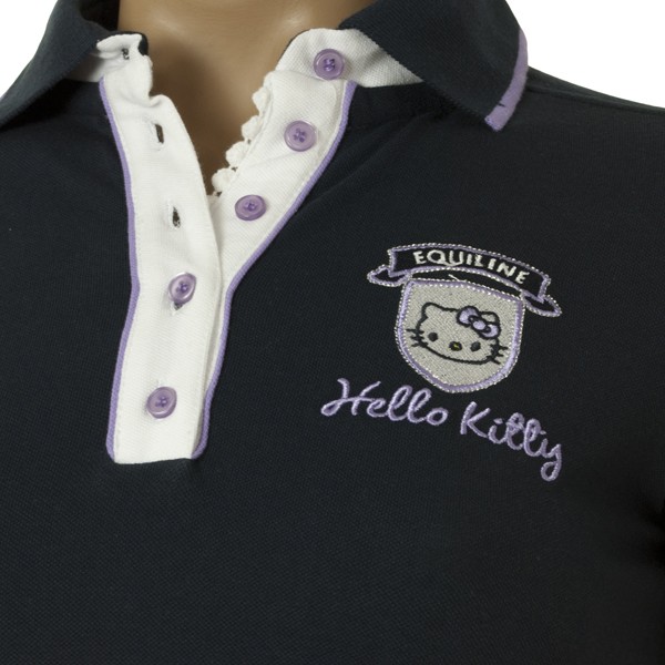 Polo tričko z letnej kolekcie Equiline Atria je vyrobené z príjemného bavlneného materiálu. Má golier a zapínanie ku krku na gombíky, ktoré je spolu s golierom lemované kontrastnou farbou. Na spodnej strane sú malé rozparky, na prednej strane je vyšité logo Hello Kitty.